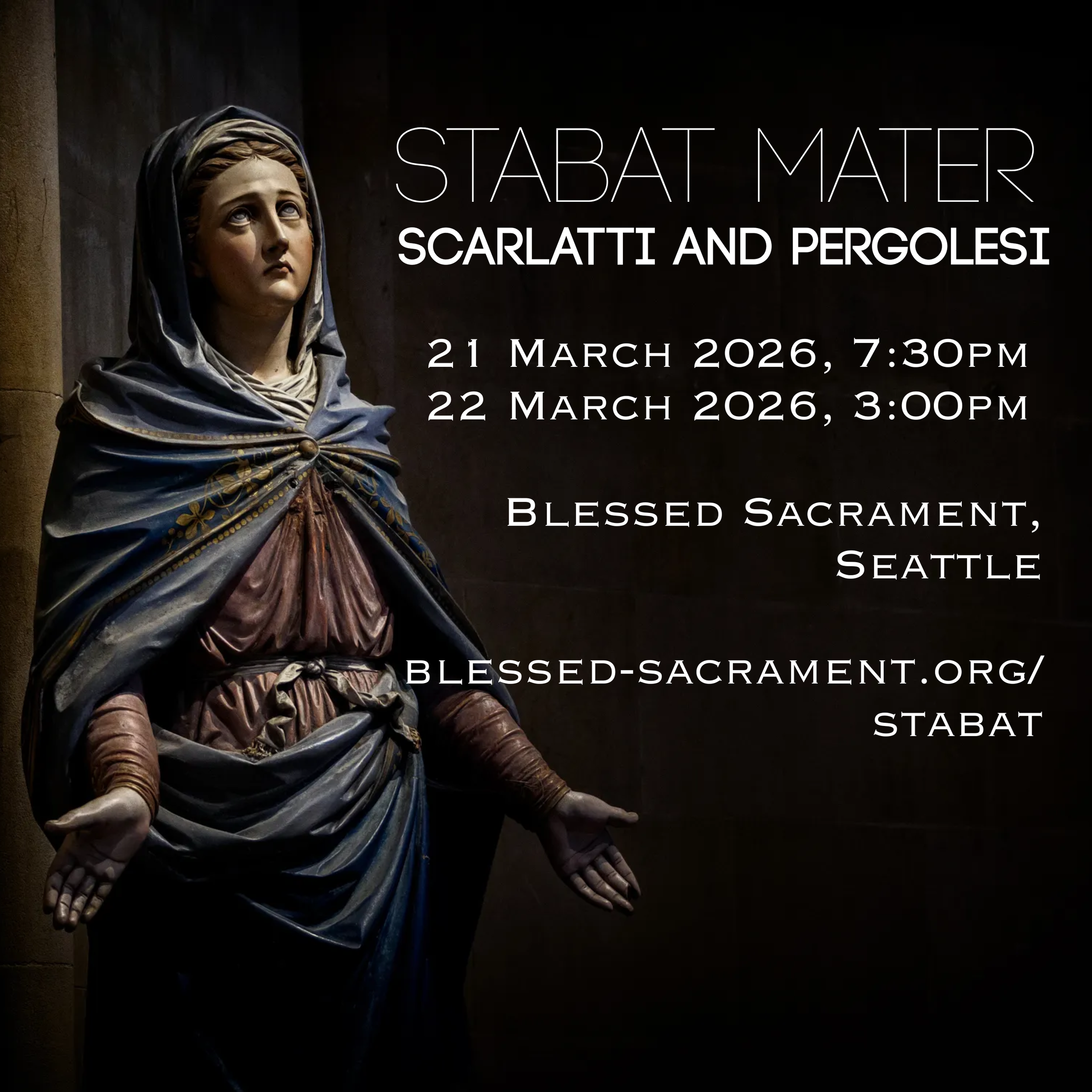 Stabat Mater Saturday, March 21, 2026, 7:30pmSunday, March 22, 2026, 3:00pm Tickets Assistant Director of Sacred Music, Caitlin Hennessy, and Staff Singers Yuhao Zhang, Emili Rice, and Nori Heikkinen sing settings of the “Stabat Mater” by Pergolesi and Scarlatti.